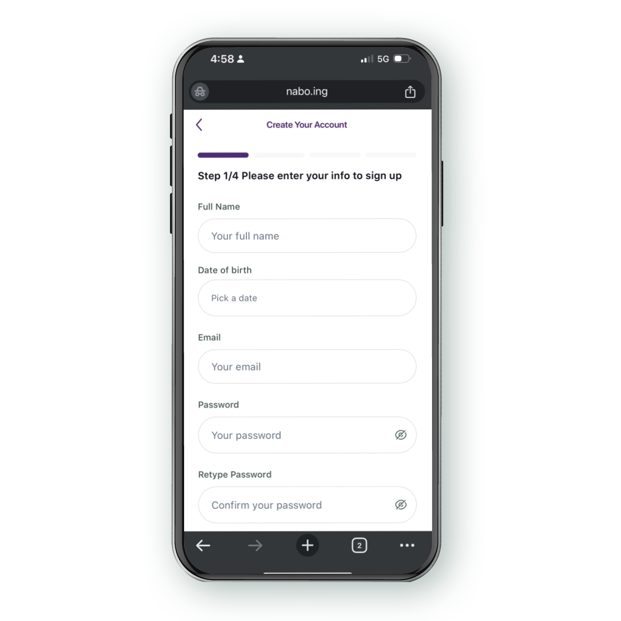 Fill in profile information.
